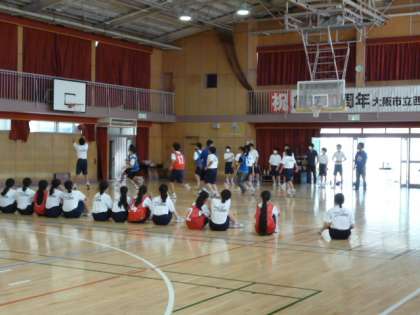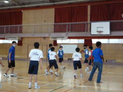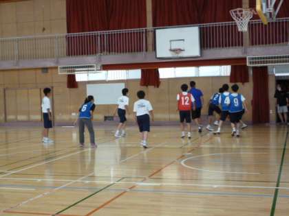 授業の後半、バスケットのゲームをしました。ゴールが決まると、周りから拍手が聞こえました。