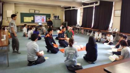 本校では、生徒にも8月6日に消防署にて救命救急講習会を実施しています。