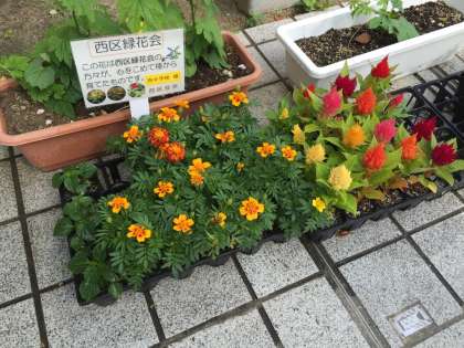 西区緑化会の方々が、心をこめて種から育てたお花をいただきました。