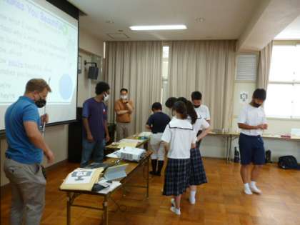 モリス先生と2人のC-NETの先生が西中学校に来て、「イングリッシュデイ」が行われました。