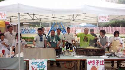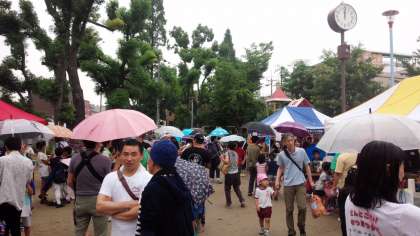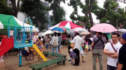九条幼稚園どんとこい祭り、雨の中、大盛況です。