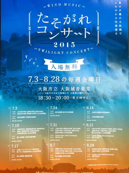夏の夕暮の大阪城で、さわやかな吹奏楽を。