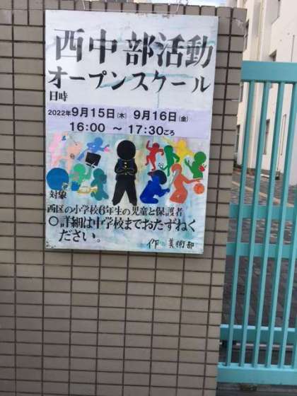 9月15,16日の2日間、西中学校では、部活動オープンスクールがおこなわれます。