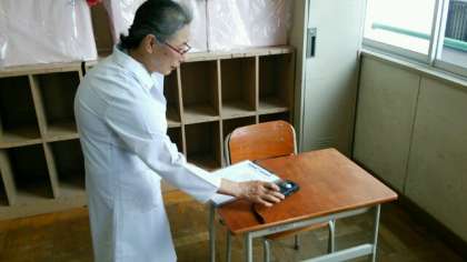 今日は、教室の明るさをはかる、照度調査を実施しました。