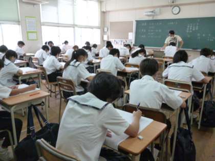 今日は国語、英語、社会の3教科のテストです。問題に向かって、一生懸命に取り組んでいました。