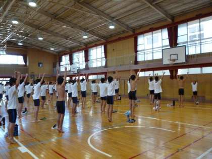 開会式前には、体育館でしっかりと準備体操も行いました。