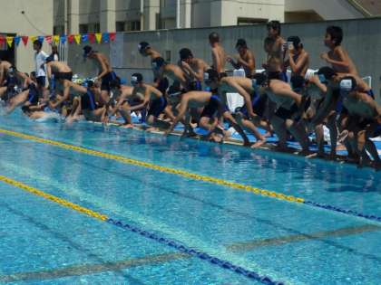 西中学校の水泳大会は準備や生徒の運営に力を入れています。