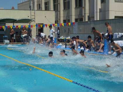 25m・50mの平泳ぎ、クロール、リレーなどがメインですが、碁石ひろいが意外に盛り上がります。