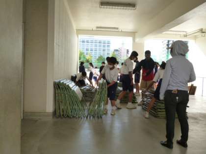 天気予報では、今夜以降に雨の確立が高いため、あまりグランドに用意を出すことができませんでした。生徒たちは、予定通りにできることを祈りつつ、手伝いをしてくれました。
