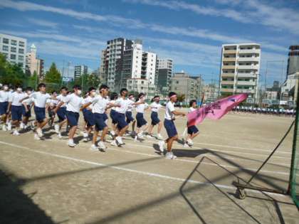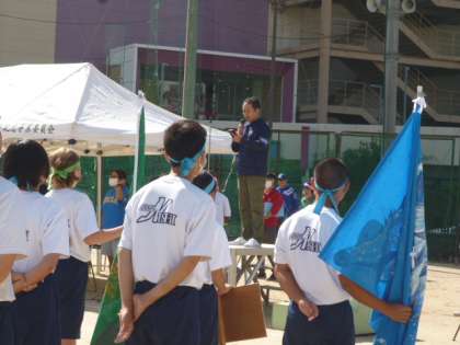 力強い行進、校長先生のお話、PTA代表の挨拶がありました。
