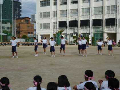 3年生は、円陣を組んで、全員の心を1つにして、演技に臨みました。