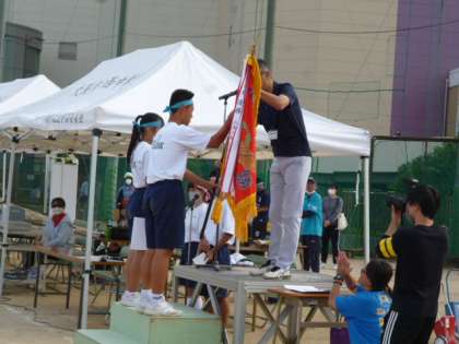 閉会式で、成績発表があり、優勝旗や賞状を授与しました。