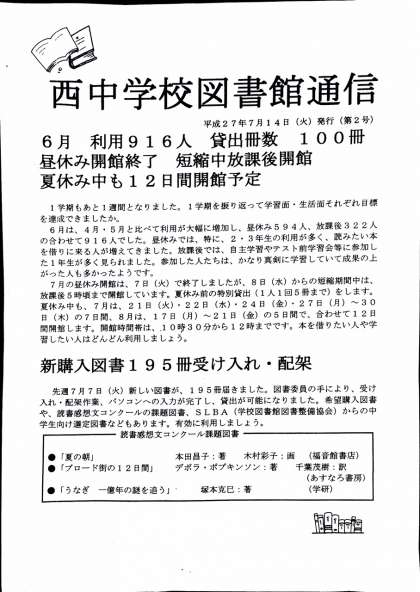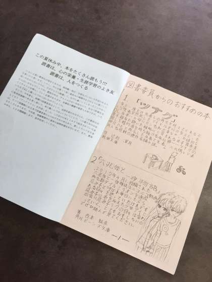 夏休みに向けて、図書館より図書館通信とブックリストが配布されました。