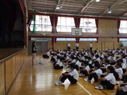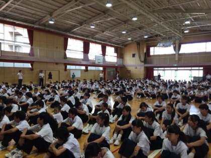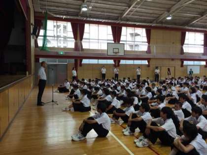 校長先生の話に続き、保健室の上田先生、生活指導担当の若江先生から、夏休みの過ごし方にについて諸注意がありました。