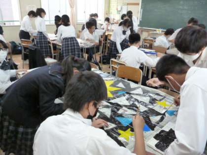 6時限目、2年生は、ステンドグラスの制作をしています。