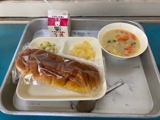 豆乳コーンクリームシチュー(米粉) はくさいのピクルス パインアップル(カット)でした。