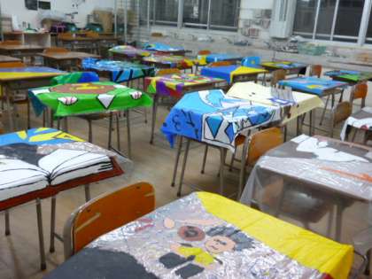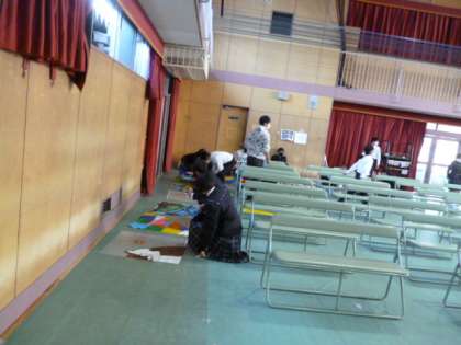 2年生は、ステンドグラスの制作から日を追って展示の作業が行われました。
