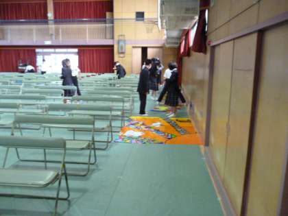 文化発表会「展示部門」では、特別教室・校舎内廊下・体育館などで展示の準備が進められています。