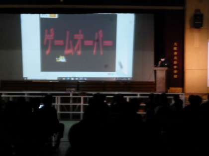 次に幕間1の後、プログラム2は、パソコン部の発表です。自作のゲームが紹介されました。