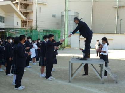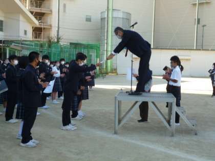 続いて、学級旗のコンテストで1−1,2−3,3−2が各学年で表彰されました。
