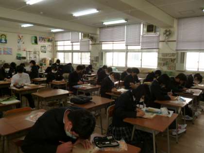問題用紙、解答用紙が配られました。緊張感のある中で、テストの問題に取り組みました。