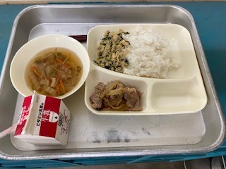 今日の給食は、豚肉のスタミナ焼き すまし汁 とりなっ葉いため でした。