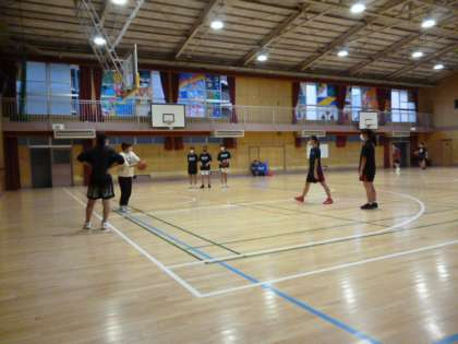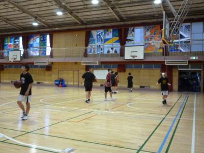 画像は、女子バスケットボール部、男子バスケットボール部、サッカー部の様子です。