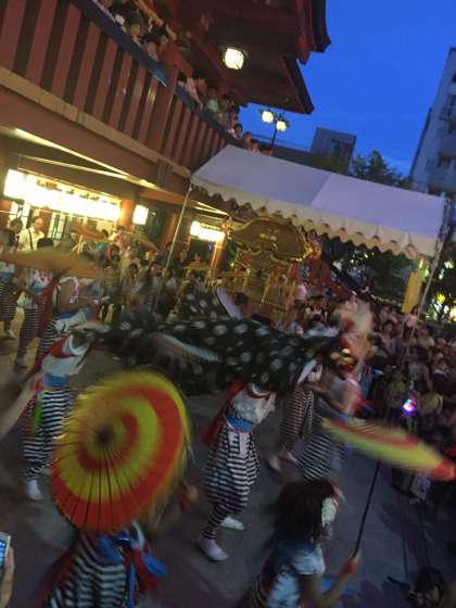 小さい赤ん坊が、獅子舞や太鼓の上で、泣いていました。