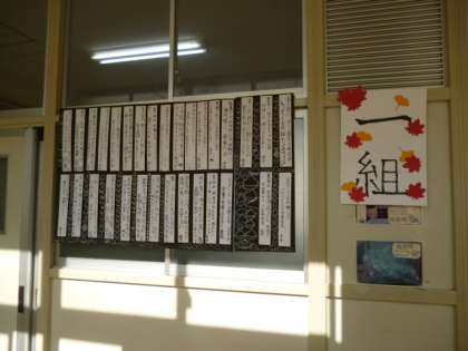 2年生の教室前の廊下には、国語科で学習した短歌の作品が掲示されています。