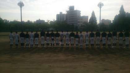 本日10時45分頃から第4回戦、五箇荘中学と大阪府ベスト32をかけての一戦が地元松島公園野球場で行われます。