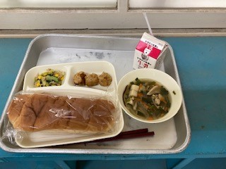 今日の給食は、あげシューマイ ツナとチンゲンサイのいためもの 中華スープ パンでした。