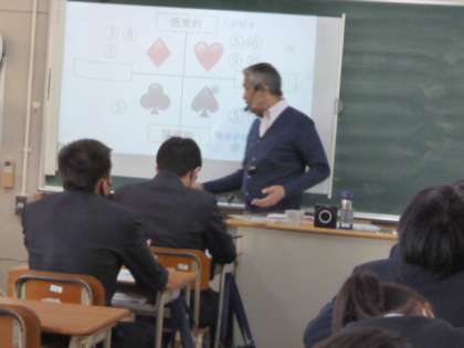 2・3・4時限目に、3年生3クラスは、学級ごとに「SPトランプによるキャリア学習」を実施していただきました。
