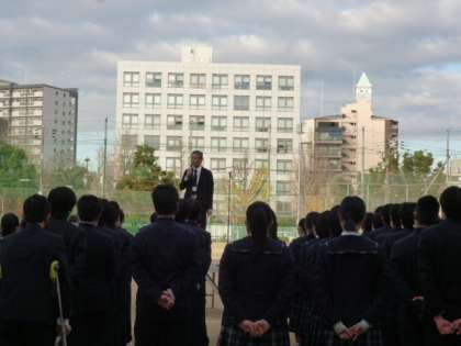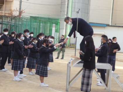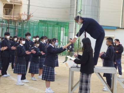 朝は、寒くなってきましたが、生徒は元気よく登校し全校集会が行われました。
