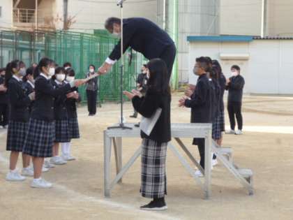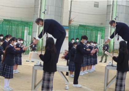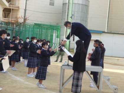 また、卓球部は、大阪市のブロック大会で女子団体 準優勝の賞状を授与しました。