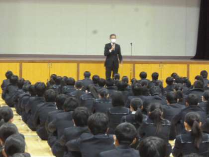 1限目3年は集会、1・2年生は特活を行いました。そして、2時限目は、全校生徒が体育館に入り、2学期終業式が行われました。
