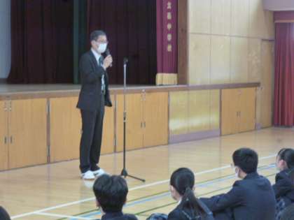 校長先生は、成人式の話題から成人は「自由」と「責任」を持つ必要があることを話しました。新しい年を迎え、生徒たちも、気を引き締めた様子で、校長先生の講話を聞きました。