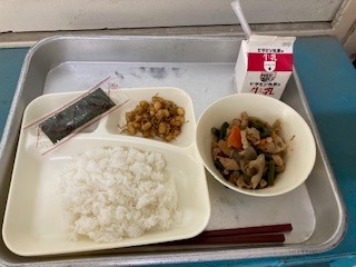 今日の給食は、筑前煮 じゃこ豆 焼きのり でした。