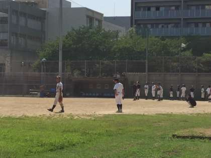 野球部は、浪速公園球場で、東住吉中、難波中と合同練習会をしました。