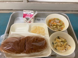 今日の給食は、ほたて貝のグラタン スープ 和なし(カット缶)でした。