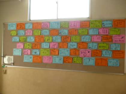 1年生は、今年の願い事や目標を絵馬に書いています。