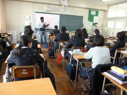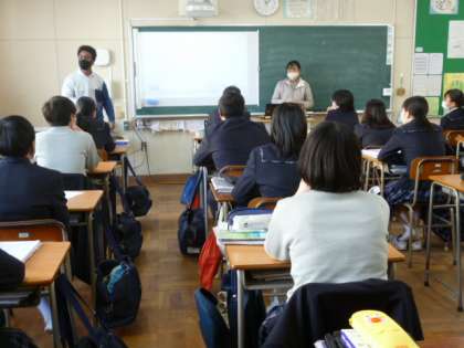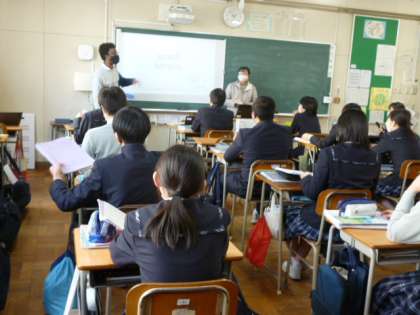 5時限目、3−1は英語の授業で、C-netのモリス先生も参加しています。