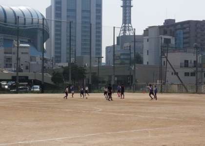 猛暑の中、サッカー部が下福島中学校と練習試合を行いました。