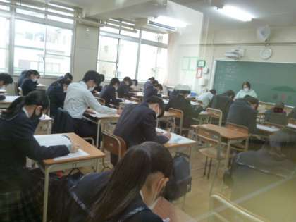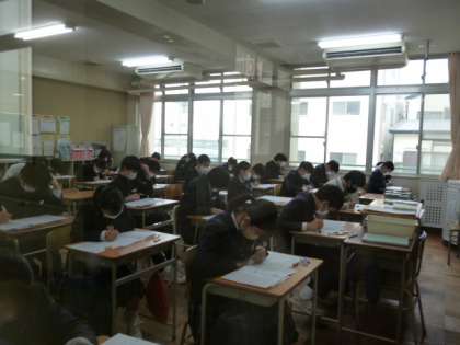 中学校での最後の定期テストです。来週の私学入試に備え、真剣にテスト問題に向かっています。