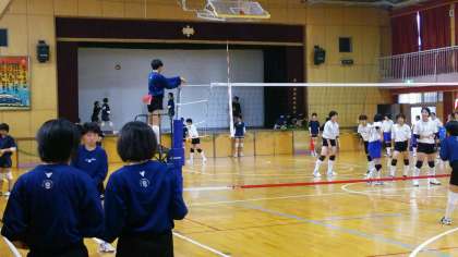 本日は、美津島中学校と住道中学校を招いて、暑い体育館で終日練習試合を行っています。職員室まで部員の声が聞こえてきました。今後の成長・活躍が楽しみです。