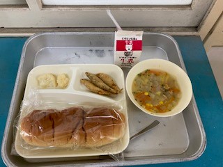 今日の給食は、わかさぎフライ コーンとはくさいのスープ カリフラワーのサラダ でした。