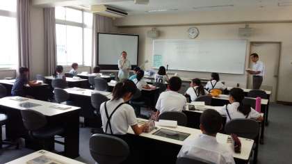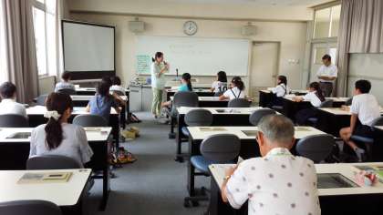 本日、第4回の英語検定講習会が行われました。夏の空にモクモクと湧き上がる白い積乱雲が発生する中、小学校児童が14人が元気に参加し、英語の歌とリスニング2回目を実施しました。