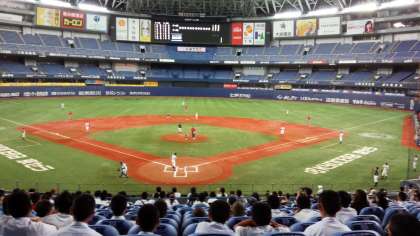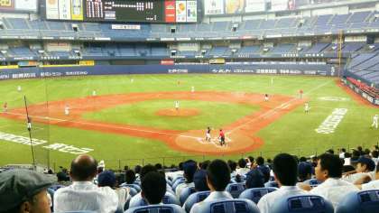 身体が小さいせいか、球場がたいへん大きく見えます。今日の北ブロック
