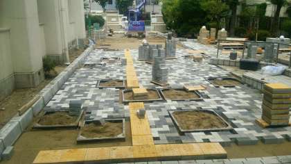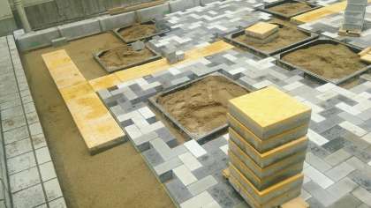 整地された敷砂にインターロッキングが丁寧敷き詰められていきます。