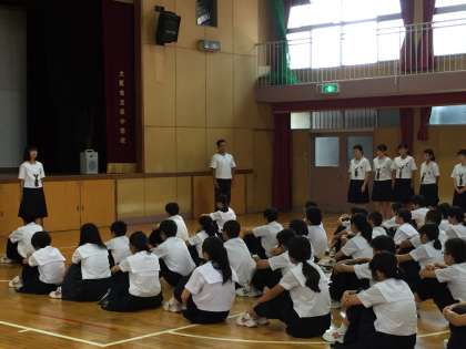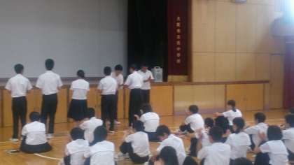今日は、1、2年生の学年集会の日でした。