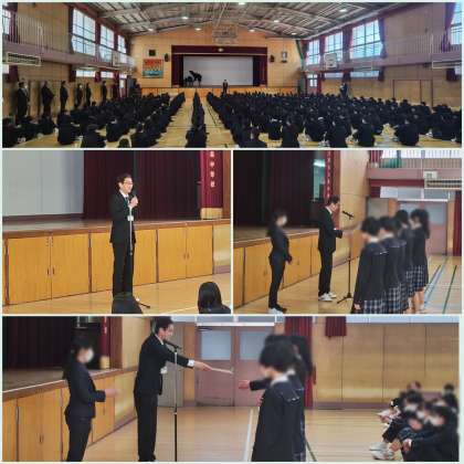 生活指導の先生からは、気持ちいい挨拶ができるようになってきたので継続して欲しいということ、時間を守ることの意義についてお話がありました。